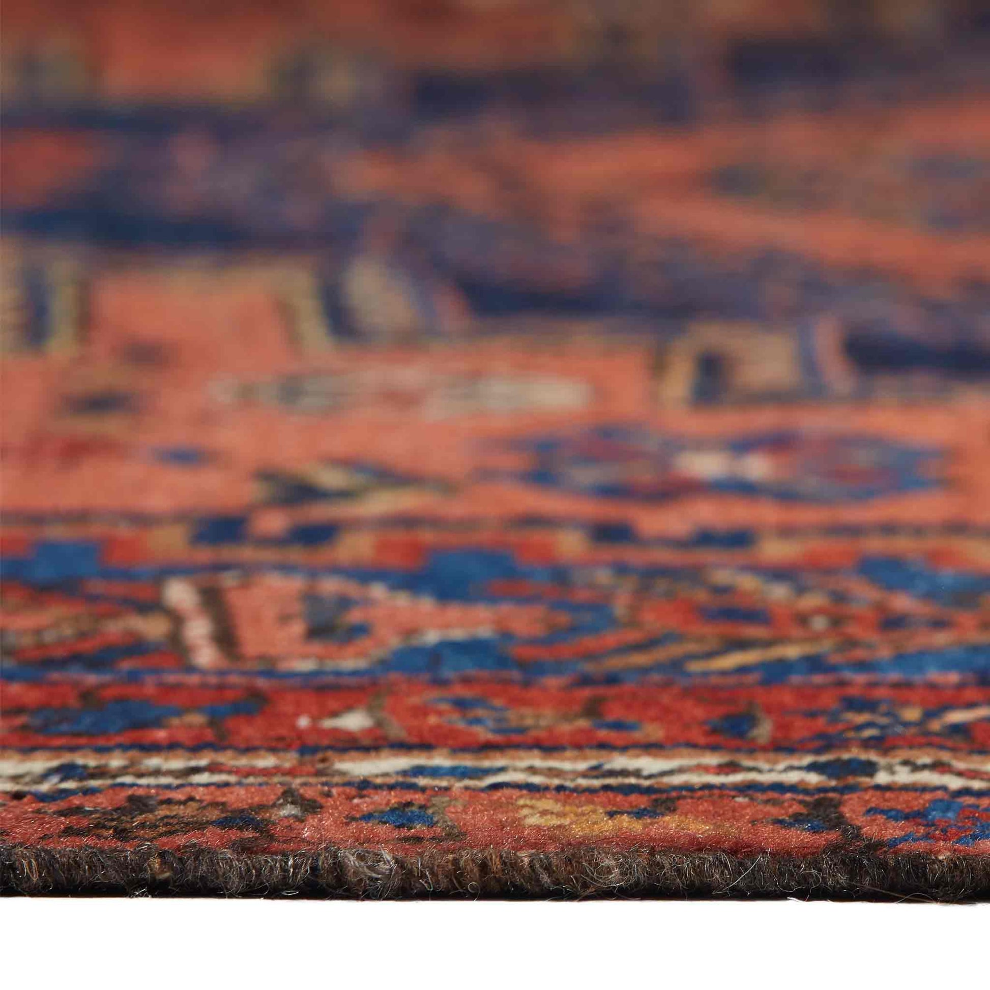 The colours of this rug are a symphony of richness and depth. Deep hues of crimson and royal blue create a sense of regal elegance, while earthy tones of golden brown and warm terracotta evoke a connection to nature's embrace. These colours blend harmoniously, forming patterns and motifs that are both captivating and timeless.